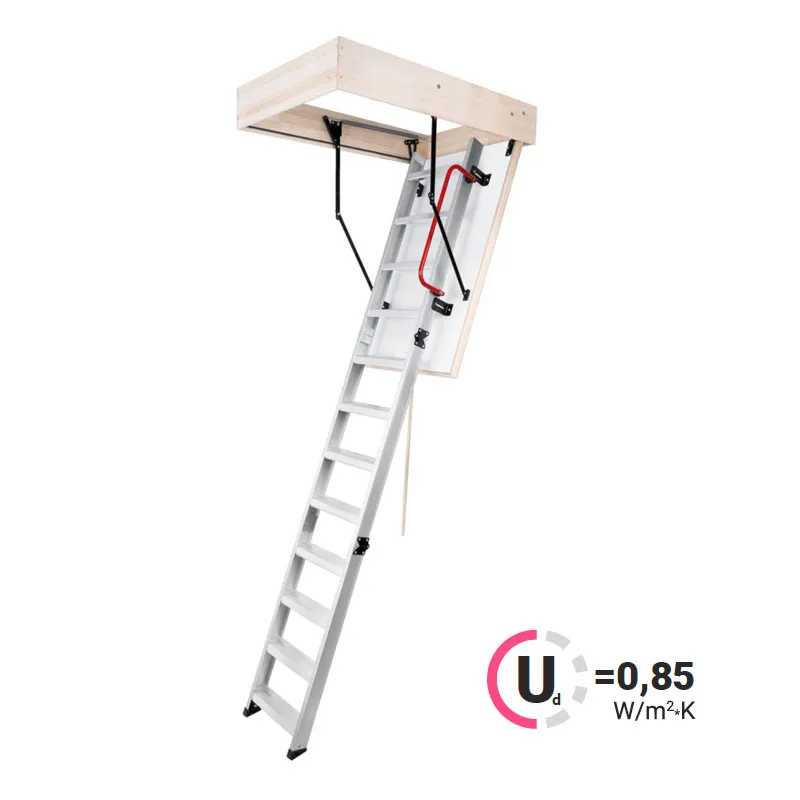 Крышка лестницы представляет собой многослойную конструкцию - деревянная рама, внутри которой находится пенопласт. Внутренняя часть крышки покрыта оцинкованной жестью, наружная часть белой эмалью и защитной пленкой. Толщина крышки 60 мм. Все соединяющие части изготовлены из твердого материала и имеют оцинкованное покрытие. Короб металлический высотой 140 мм., по периметру проходит уплотнитель. Ступени лестницы изготовлены из анодированной стали и покрыты порошковой краской, поверхность имеет антискользящие насечки и выдерживают нагрузку 150 кг.
