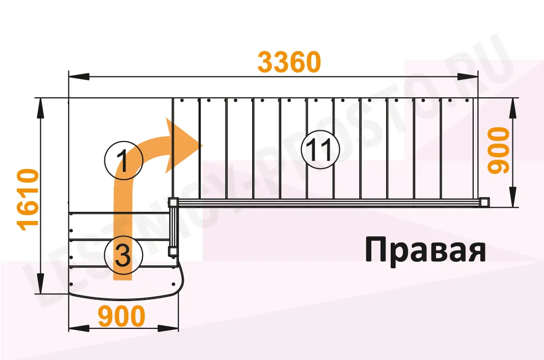 Схема лестницы К-002М/1 с поворотом направо