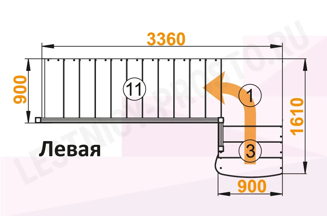 Схема лестницы К-002М/1 с поворотом налево