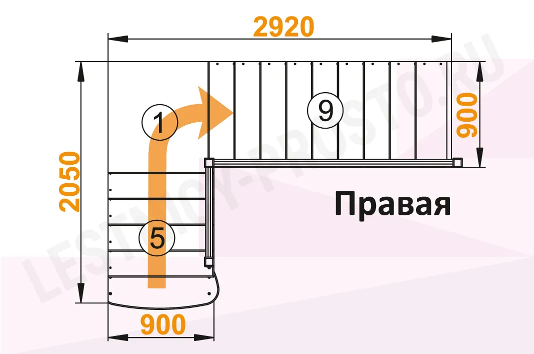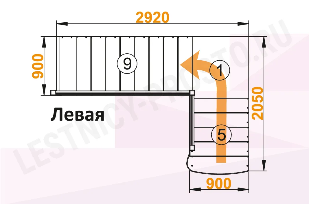 Базовый комплект включает в себя деревянные элементы лестницы и ограждения без какого-либо покрытия