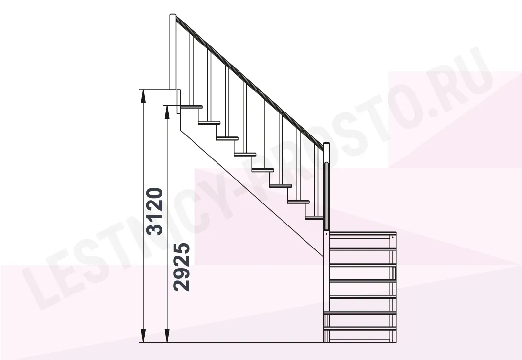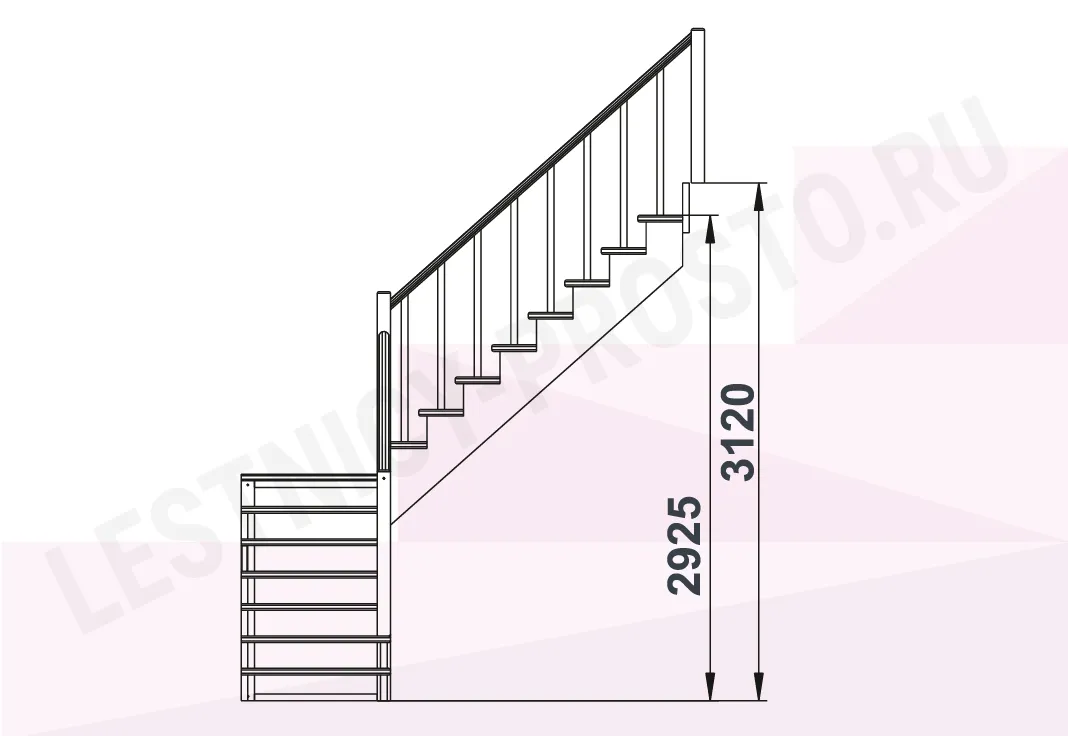 Схема лестницы К-002М/4 с поворотом налево