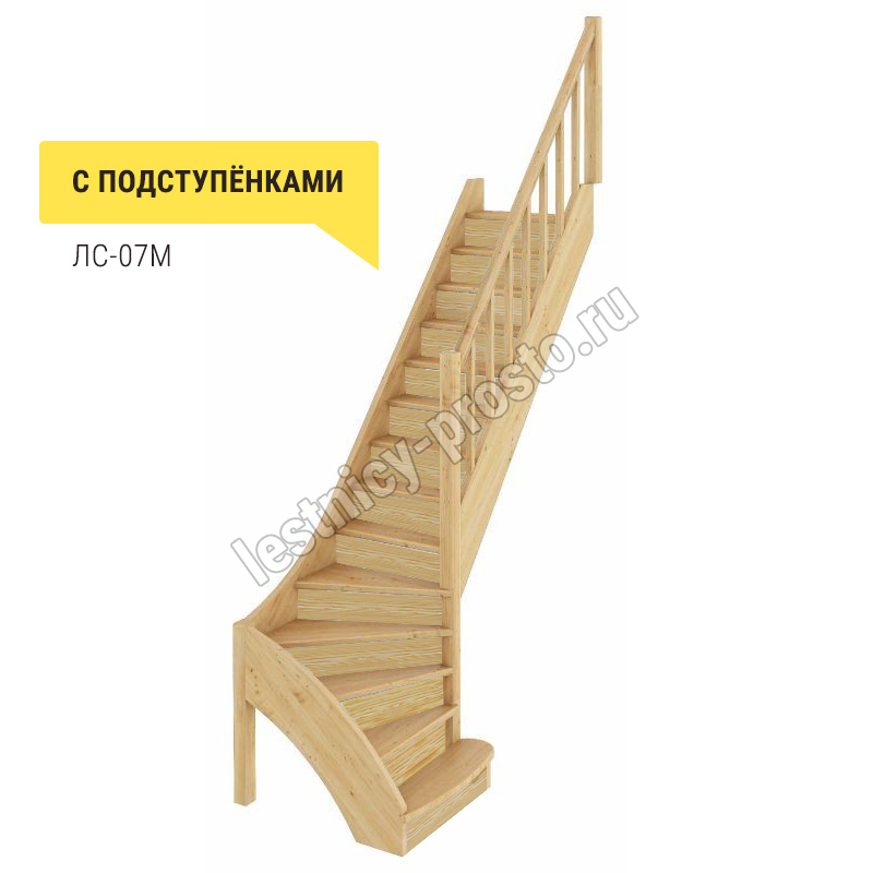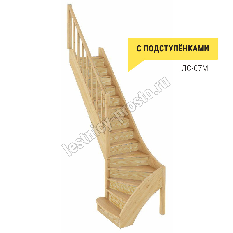 Ступени и поручень лестницы изготовлены из дуба, остальные элементы из сосны. Возможно изготовление данной модели полностью из дуба. Базовый комплект включает в себя деревянные элементы лестницы и ограждения без какого-либо покрытия.