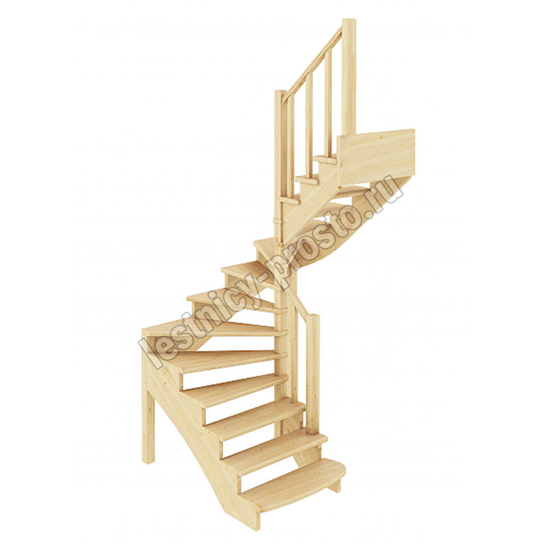 Базовый комплект включает в себя деревянные элементы лестницы с подступёнками и ограждения без какого-либо покрытия.