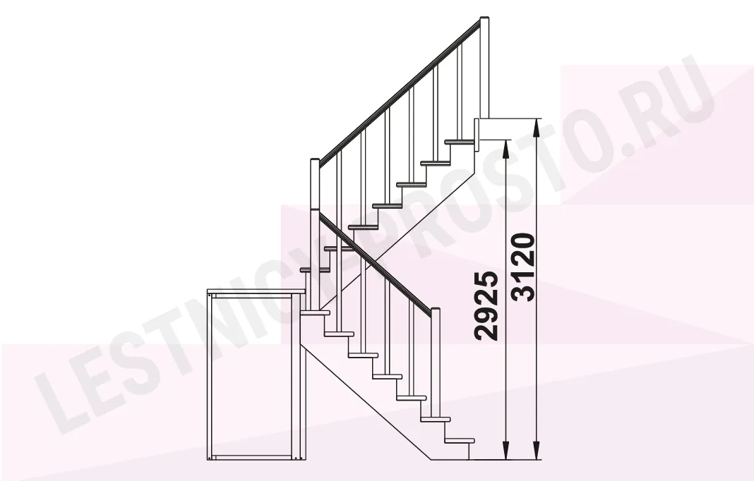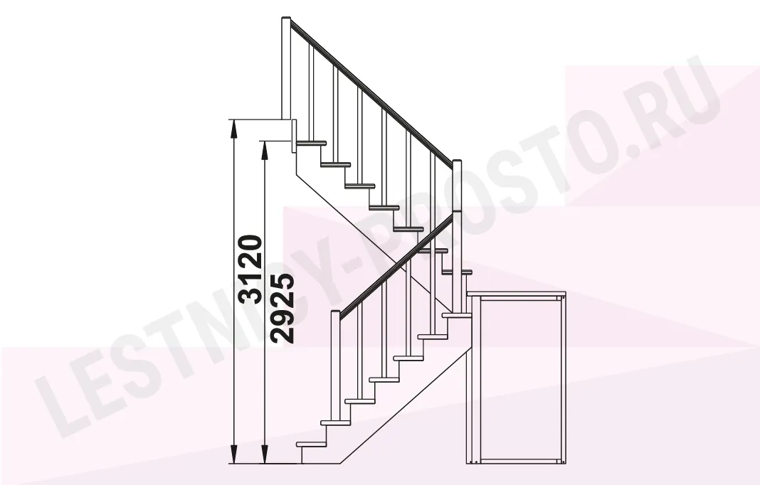 Обратите внимание! Данный вариант лестницы изготовлен из сосны эконом-класса, имеющей заметные серые/синие вкрапления цвета - это не отражается на прочности лестницы, но может быть заметно при покраске в светлые тона.