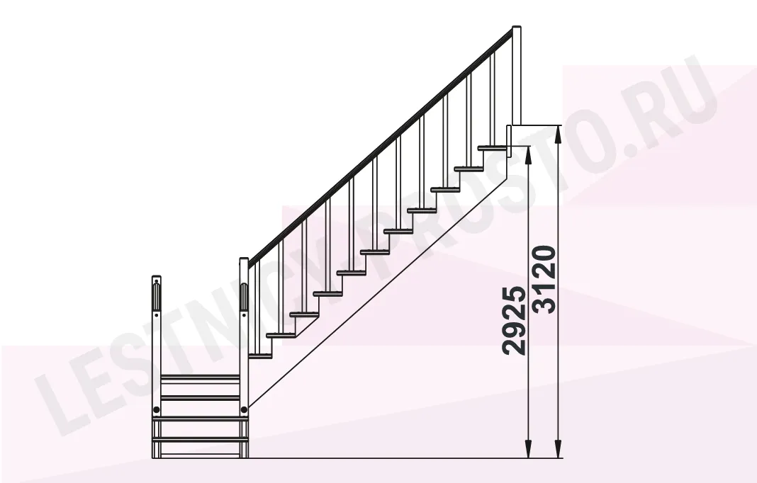 Базовый комплект включает в себя деревянные элементы лестницы с подступёнками и ограждения без какого-либо покрытия.