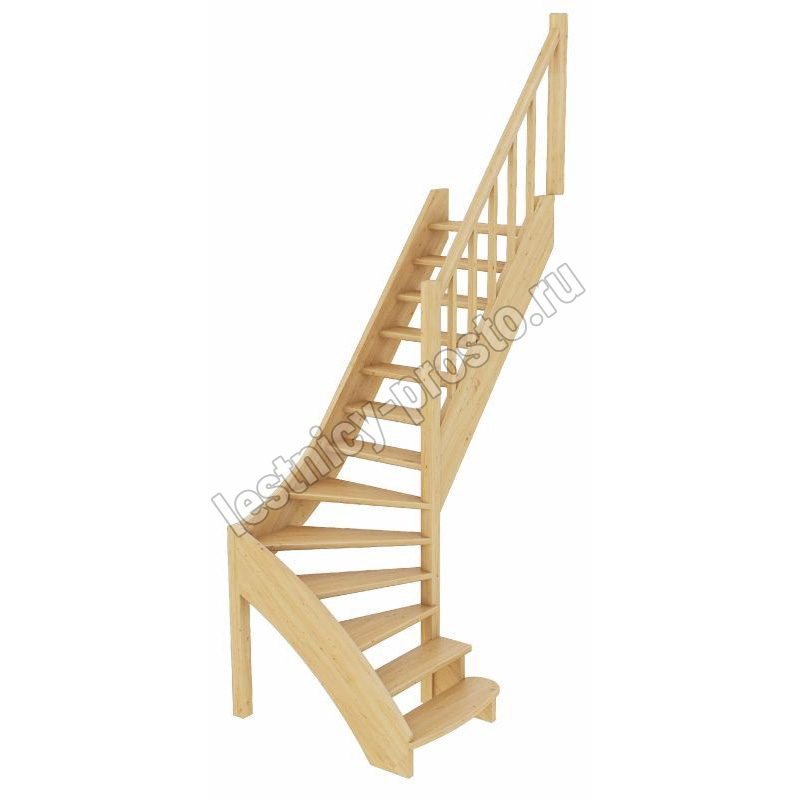 Базовый комплект включает в себя деревянные элементы лестницы с подступёнками и ограждения без какого-либо покрытия.
