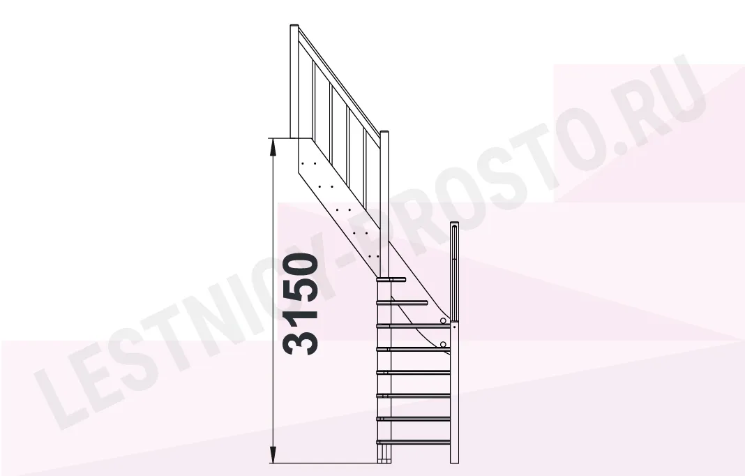 Схема лестницы ЛС-91М+2 с поворотом налево
