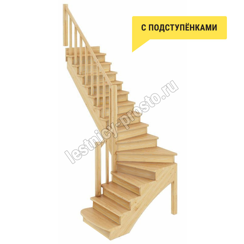 Базовый комплект включает в себя деревянные элементы лестницы с подступёнками и ограждение без какого-либо покрытия.