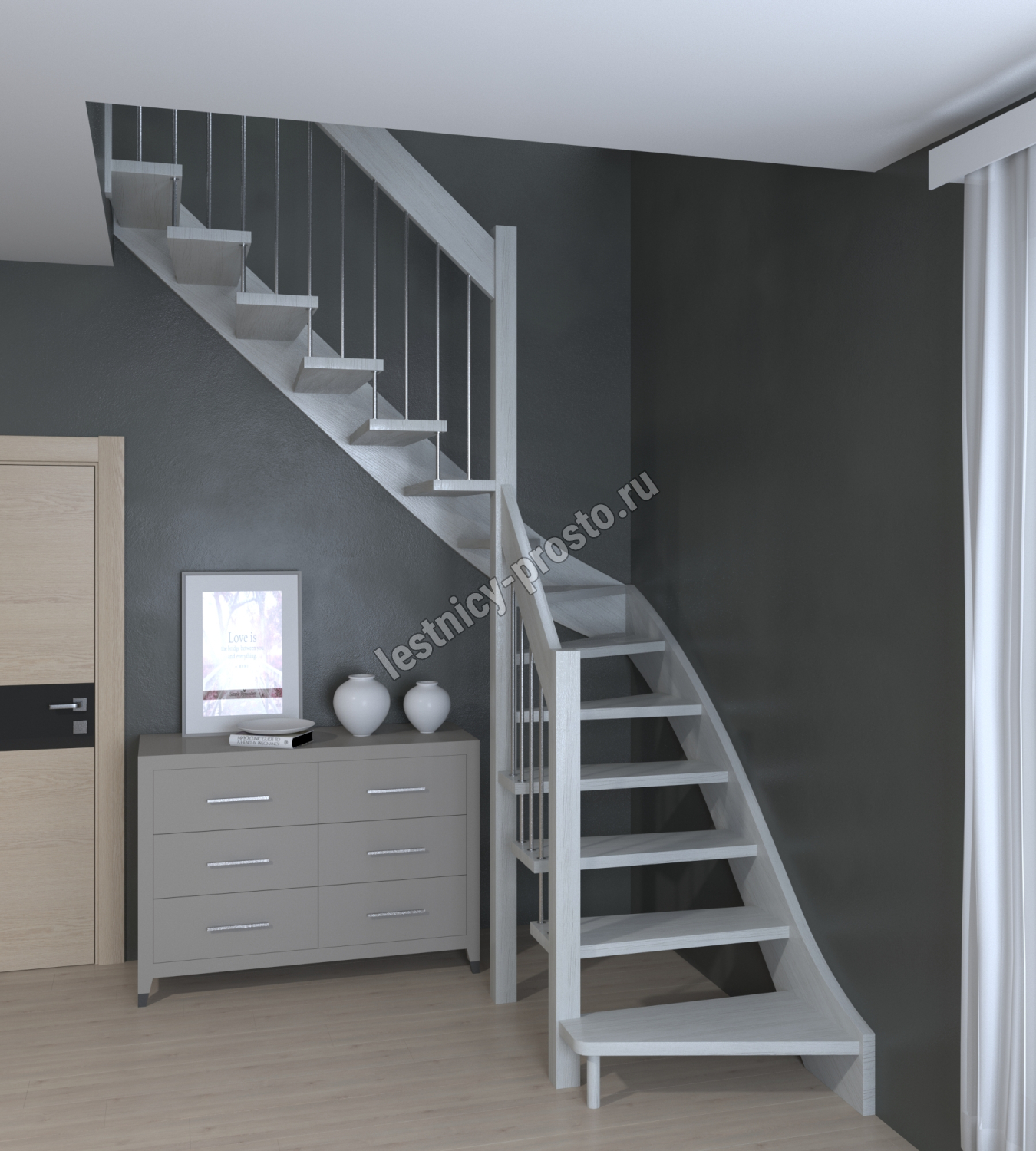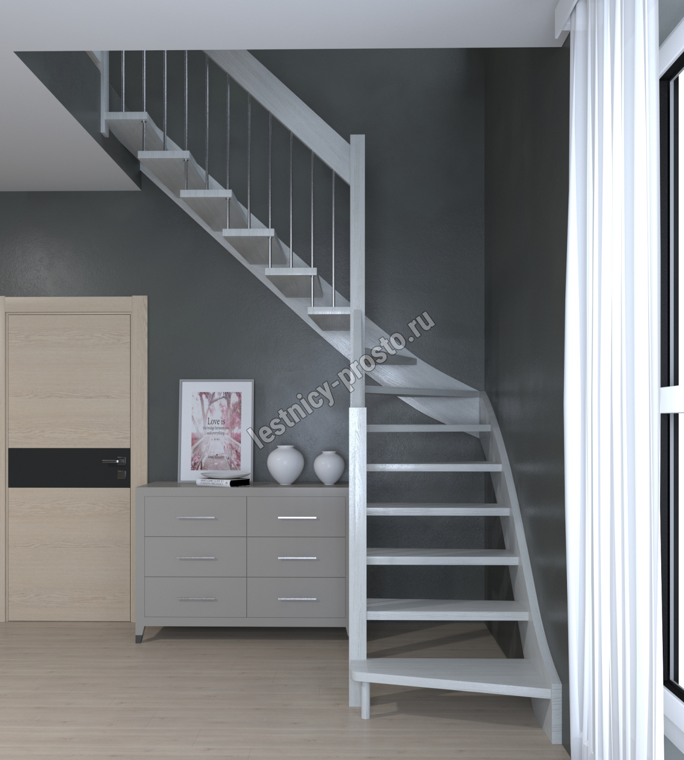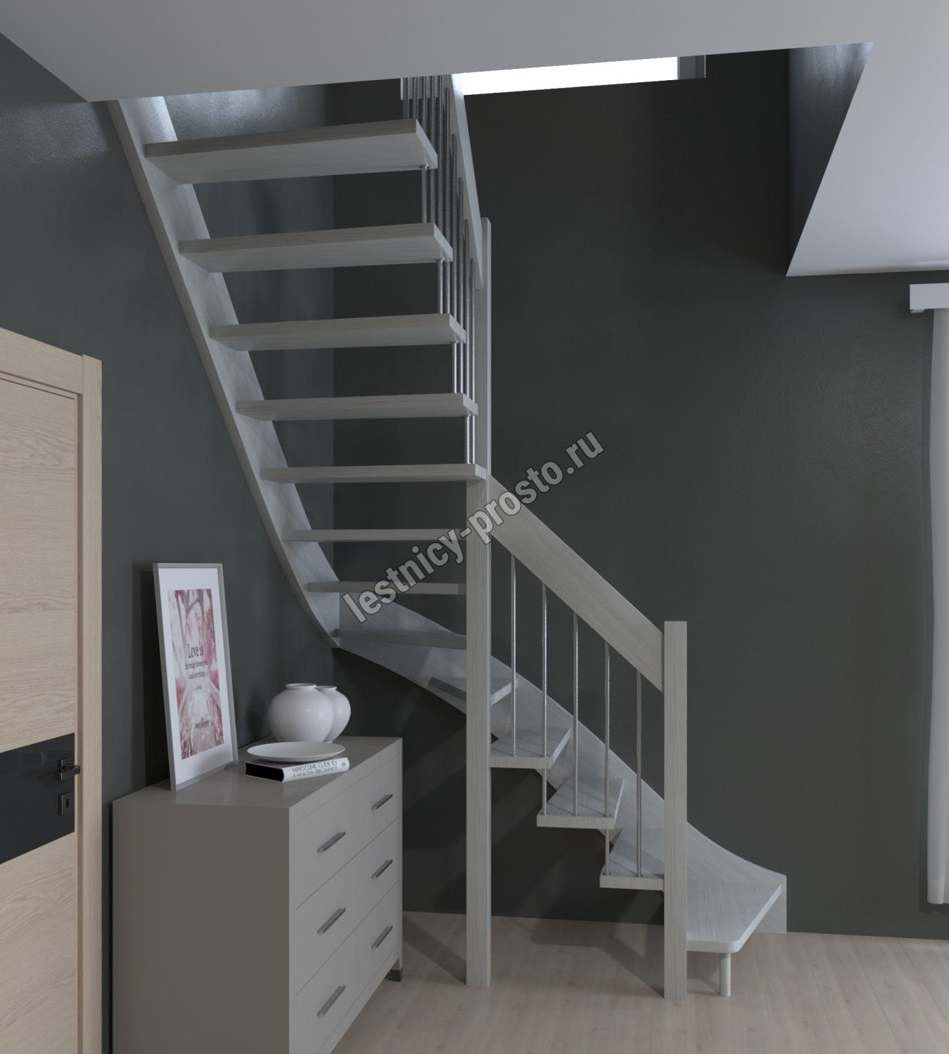 Лестница Prosto Console г-образная забежная бук, h300 см