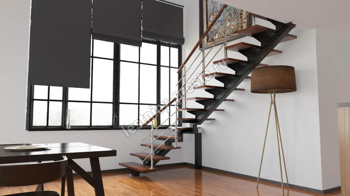 Лестница PROSTO MONO прекрасно подходит для интерьеров с минималистичным дизайном, дизайном в стиле лофт или хайтек. Основой лестницы служит цельносварной центральный косоур, который обеспечивает надёжную прочность конструкции и "парящий" дизайн, лестница с таким каркасом в интерьере смотрится легко и воздушно.