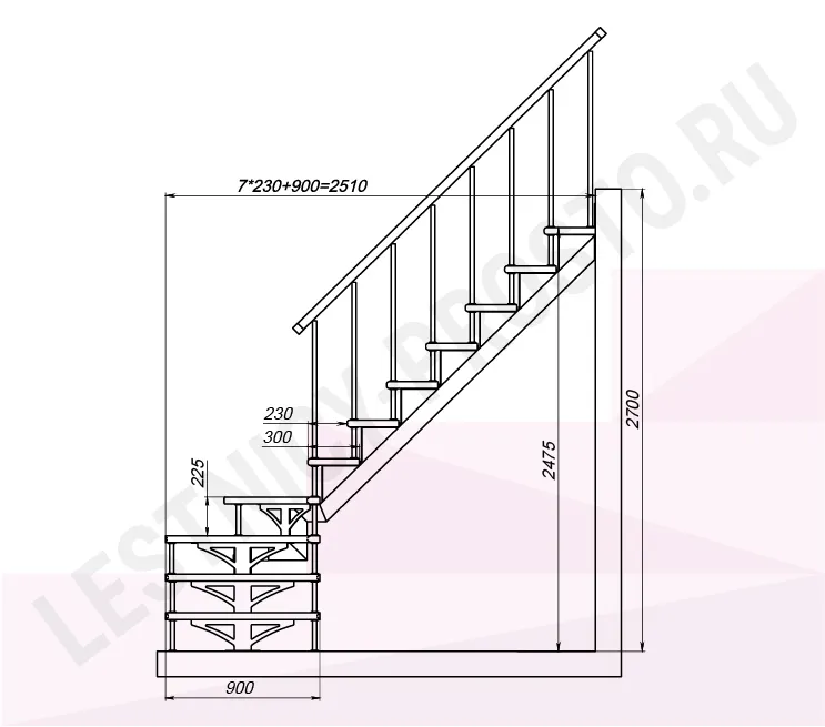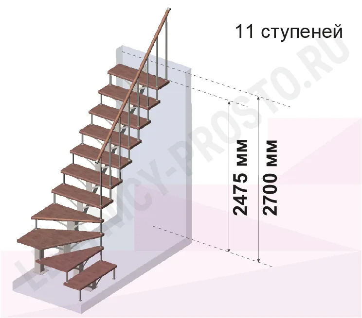 Высота лестницы 2475 - 2700 мм