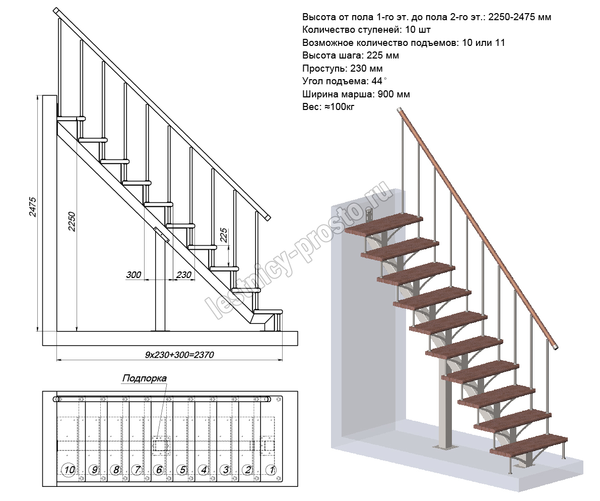 Стоимость указана для металлического каркаса и ступеней. Ограждение можно выбрать отдельно