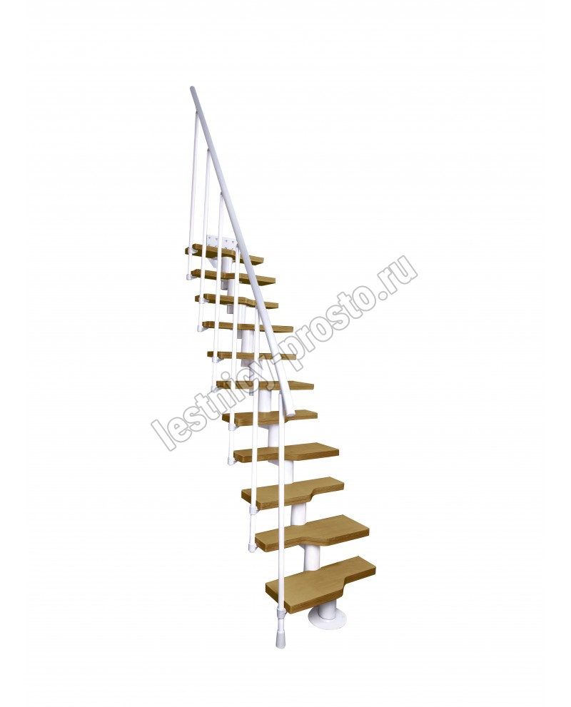 При монтаже этой лестницы, возможно регулировать высоту и глубину шага, таким образом можно получить лестницу под высоты этажа в диапазоне 2220 - 3000 мм. Ступени лестницы выполнены из сращенной ольхи и покрыты бесцветным защитным лаком.