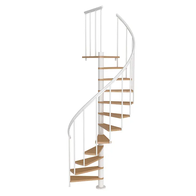Винтовая лестница SPIRAL WOOD d120 см. белая, лакированный дуб