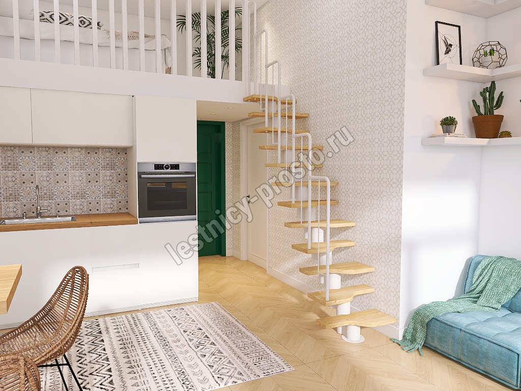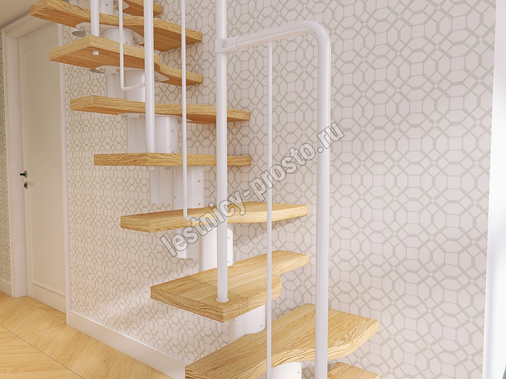 Лестница Prosto Urban White гусиный шаг 600 мм, h198-288 см (11 ступеней), ясень