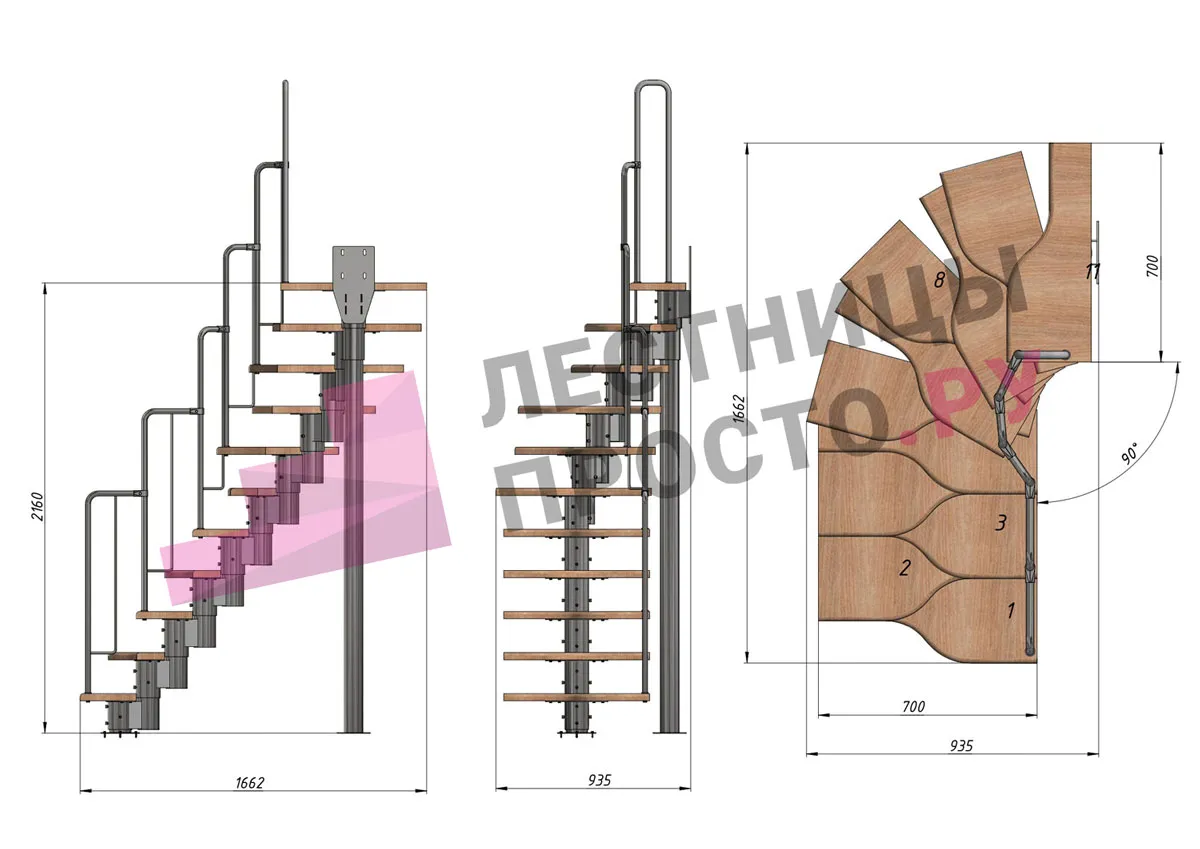 У лестницы  16 вариантов размера