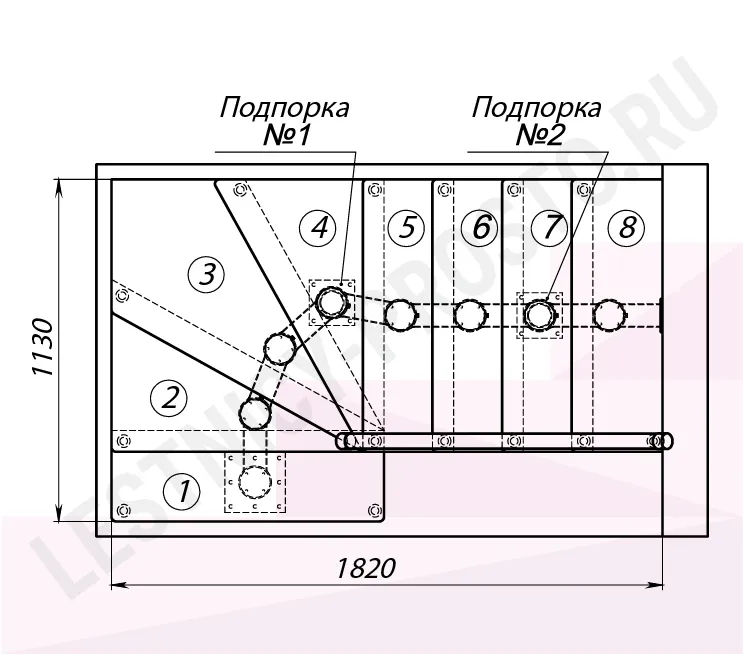 Высота лестницы 1800 - 2025 (8 ступеней) мм