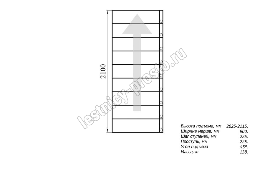 Модульная лестница Стандарт 2025-2115, Белый, Сосна, Нержавеющая сталь