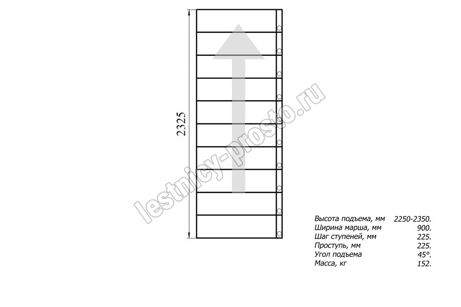 Модульная лестница Стандарт 2250-2350, Белый, Сосна, Крашеная, Без Ступений
