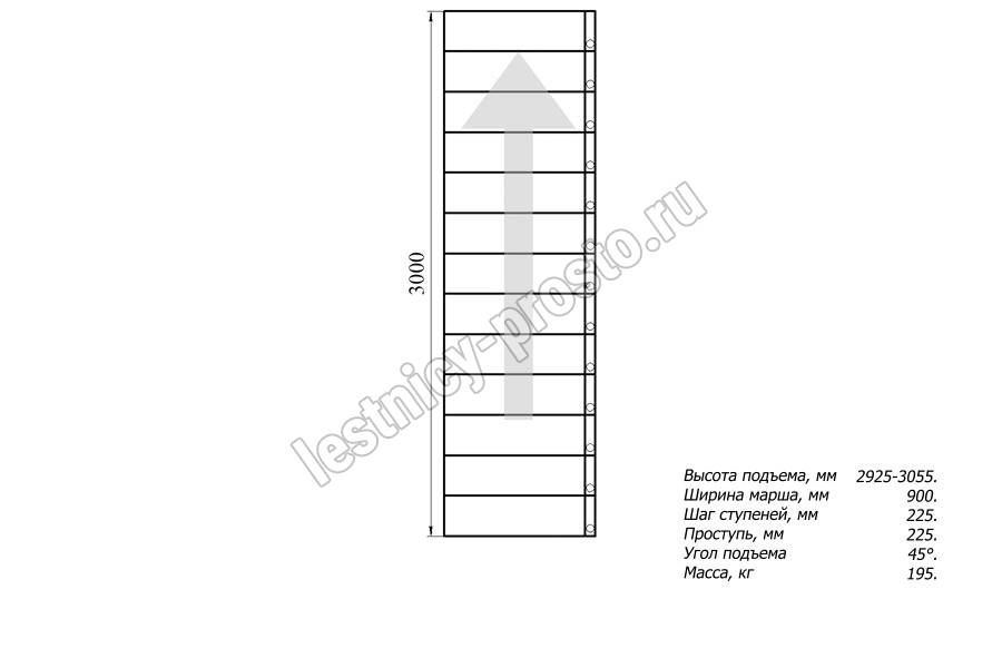 Высота лестницы 2925 - 3055 мм