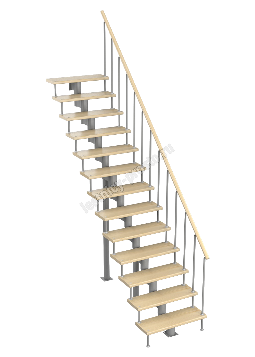 Модульная лестница Стандарт 2925-3055, Серый, Сосна, Нержавеющая сталь