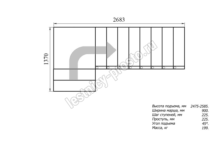 Модульная лестница Статус 225 2475-2585, Серый, Бук, Нержавеющая сталь