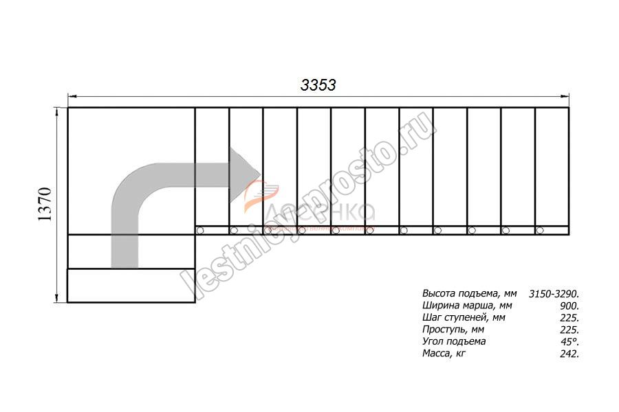 Модульная лестница Статус 225 3150-3290, Белый, Лиственница, Нержавеющая сталь