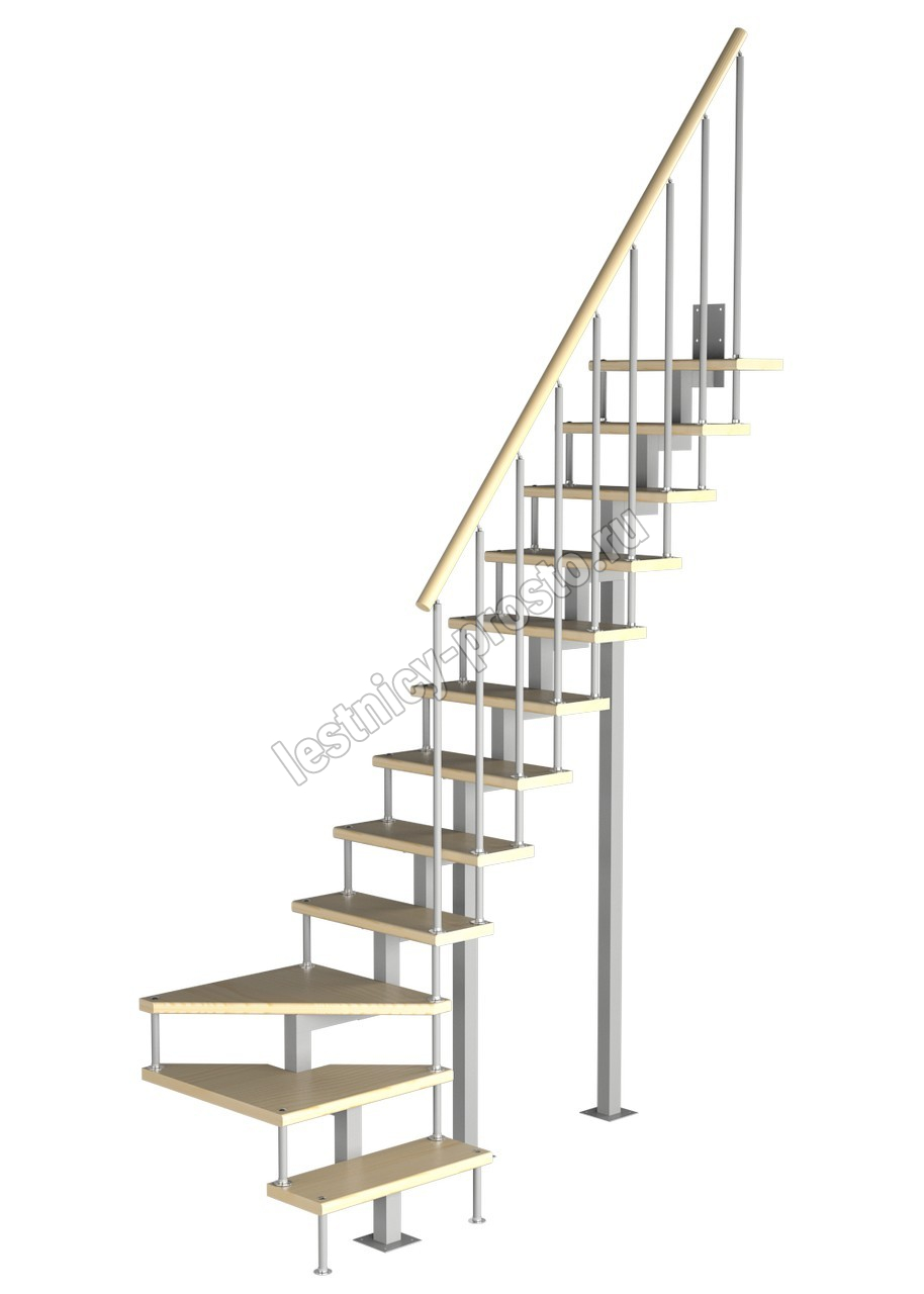 Модульная малогабаритная лестница Компакт 2700-2925, Белый, Сосна, Крашеная, Без Ступений