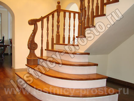 Деревянные ограждения, как правило, устанавливаются на ступени. Столбы крепятся в пол или в ступени прочными металлическими шпильками. Деревянные балясины сажаются на шканты с клеем. Редко используется боковое крепление деревянного ограждения. Для этого варианта требуются более длинные балясины, которые крепятся в торец лестничных маршей.