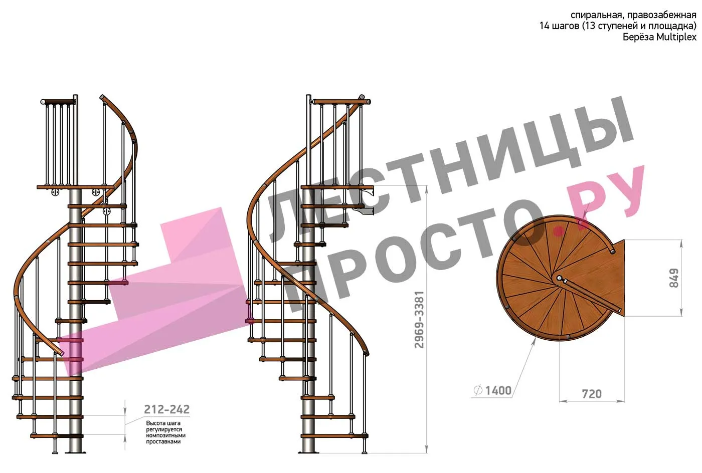 Высота лестницы 2969 - 3381 (13 ступеней) мм