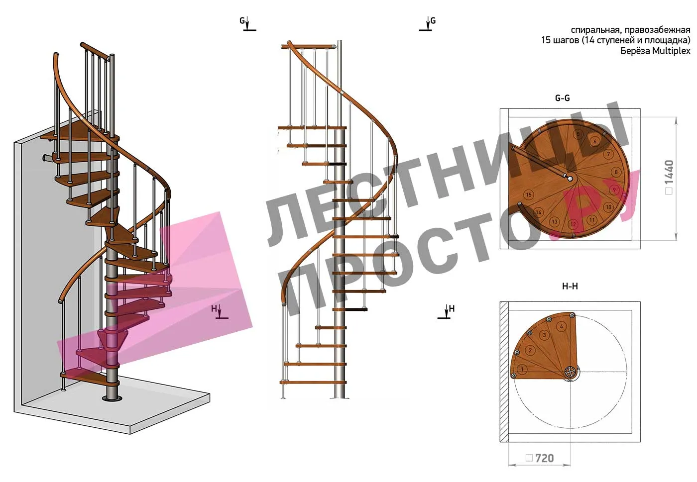 Решение об ориентации поворота лестницы принимается при сборке (комплект собирается и в правозабежную, и в левозабежную лестницу)
