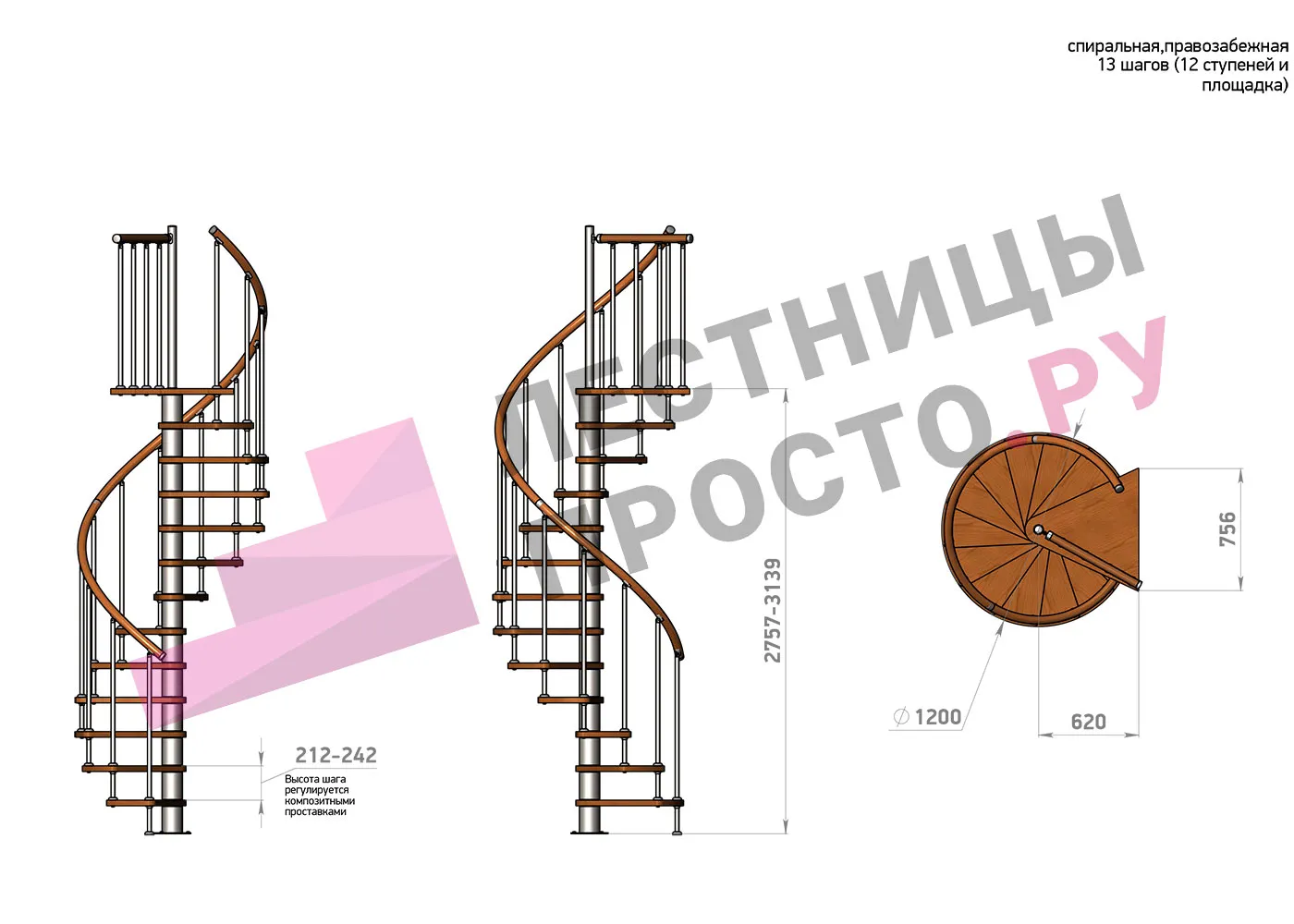 Винтовая лестница Prosto Spiral White/Высота 3182 - 3623 мм