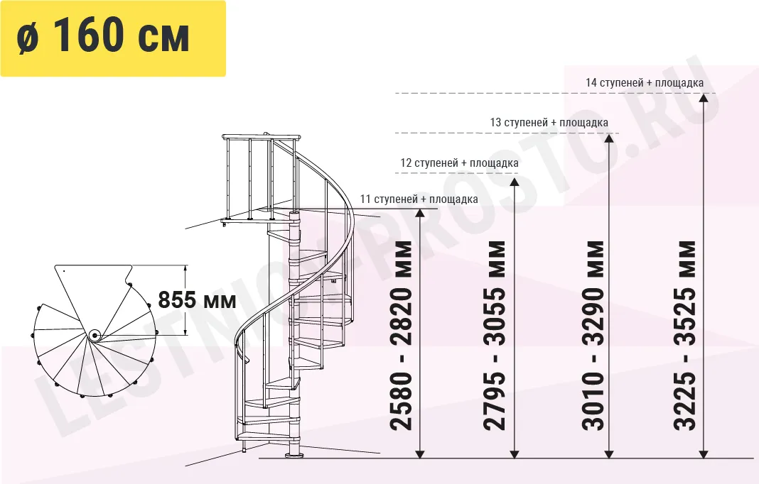 Винтовая лестница Montreal Classic серая, d160 см, h301-329 см |