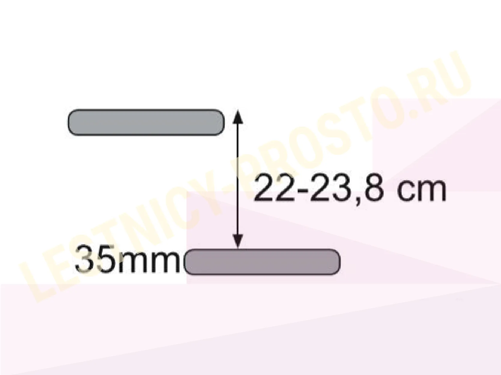 Благодаря возможности регулировать высоту шага с помощью пластиковых вставок (входят в базовый комплект), высоту лестницы можно варьировать в пределах от 2860 до 3090 мм.