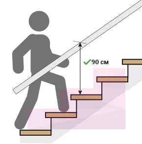 Высота поручня — вертикальное расстояние от середины ступени до верхней поверхности поручня. Высота поручня должна составлять не менее 90 см, что соответствует росту среднему росту взрослого человека.
