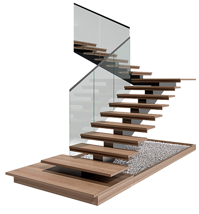 Лестница по индивидуальному проекту со стеклянным ограждением LP-2935