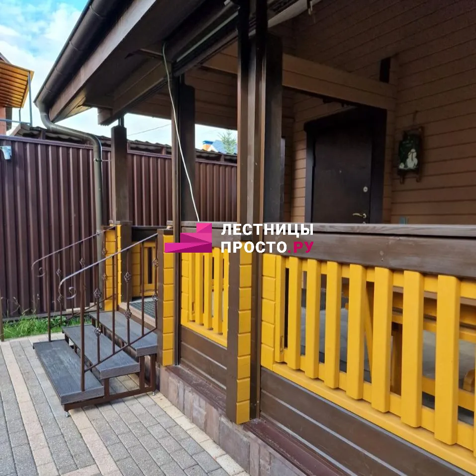 Лестница на центральном металлическом каркасе с просторной площадкой