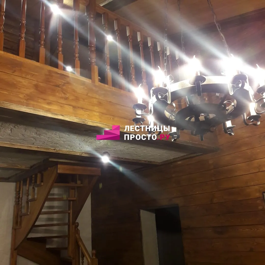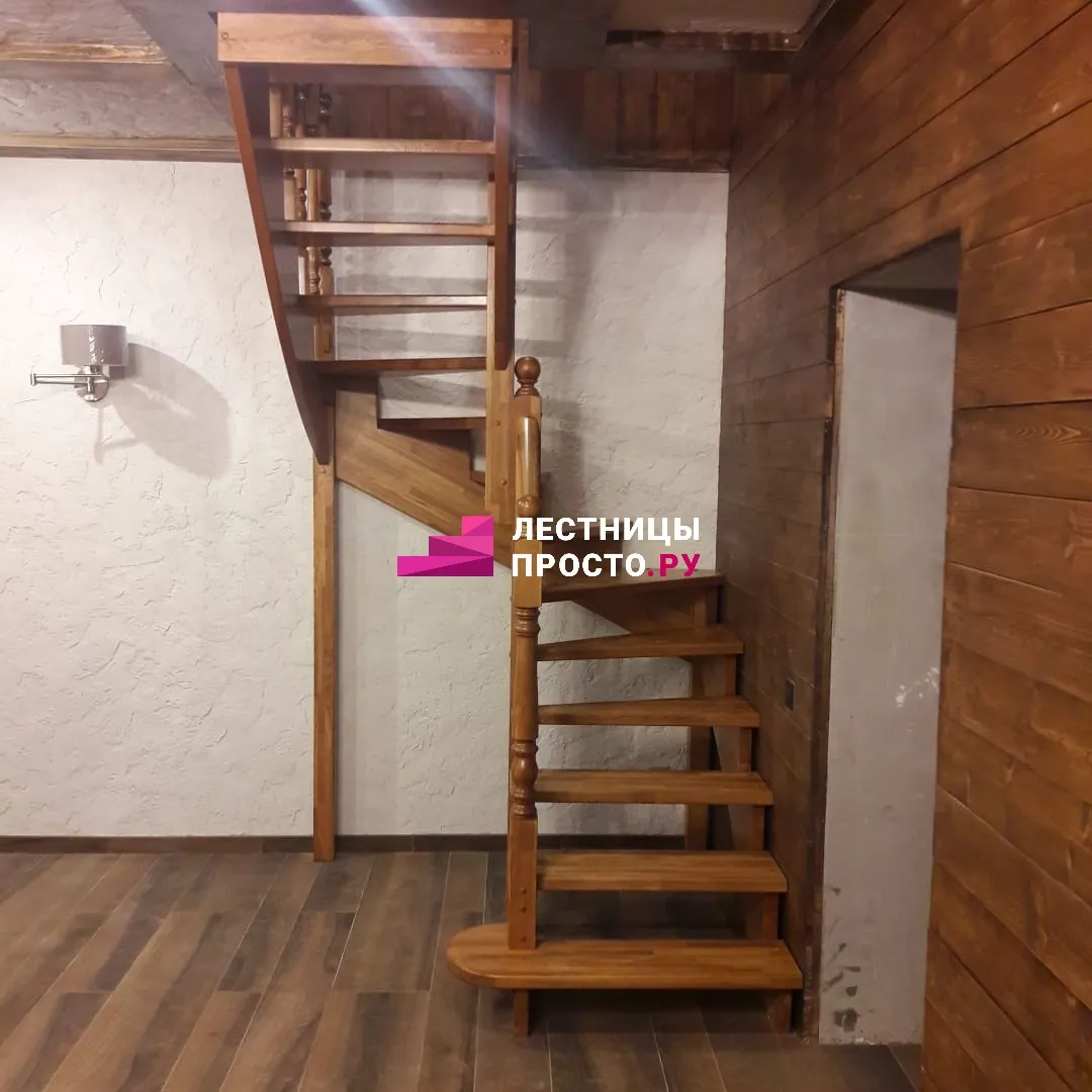 Лестница изготовлена из дуба паркетной склейки.